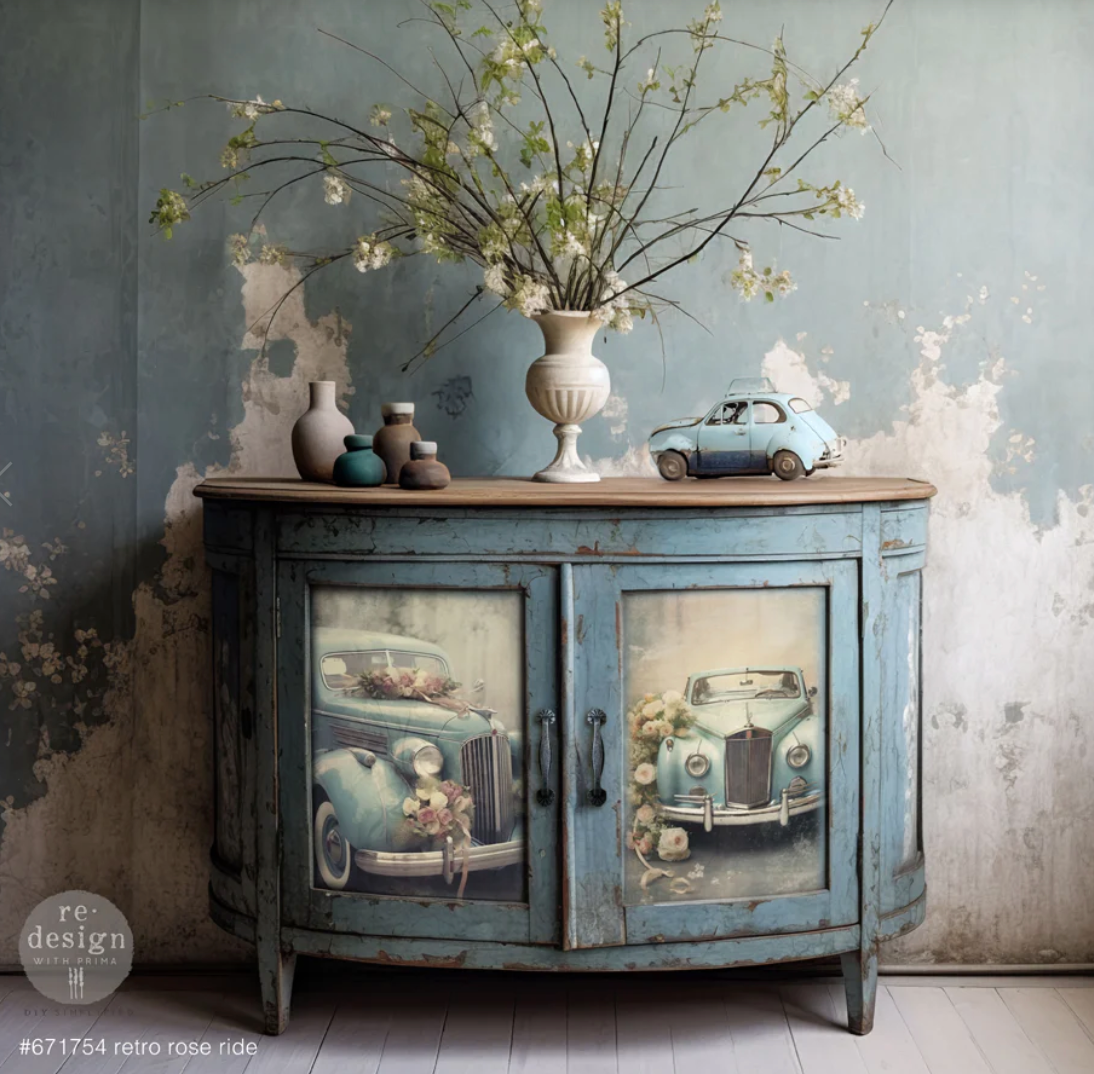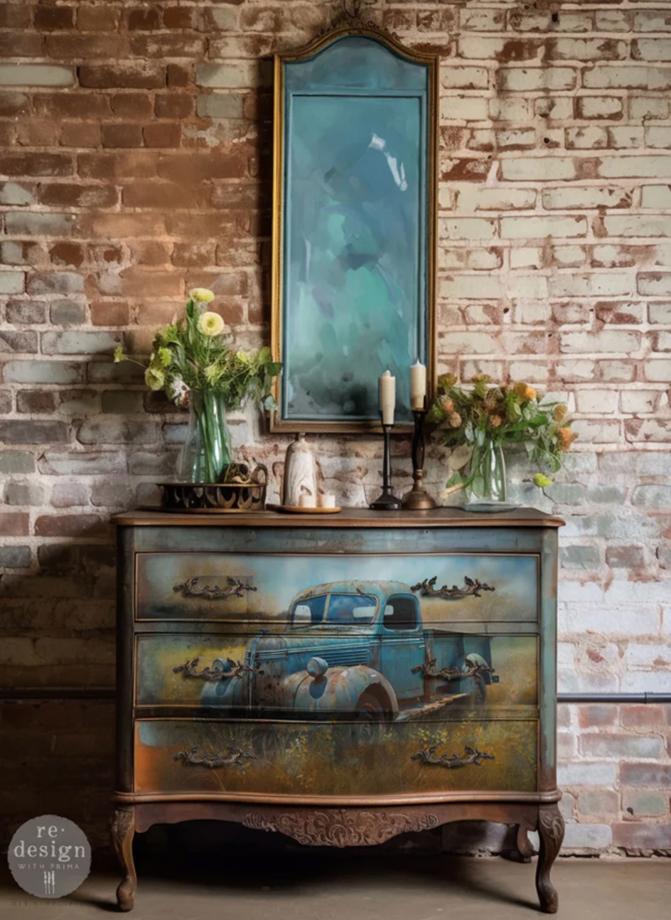 Redesign with PrimaDecoupage rice paper A1 - This Rusty Car
